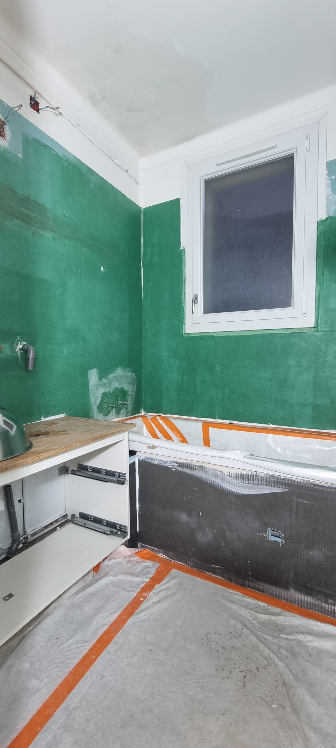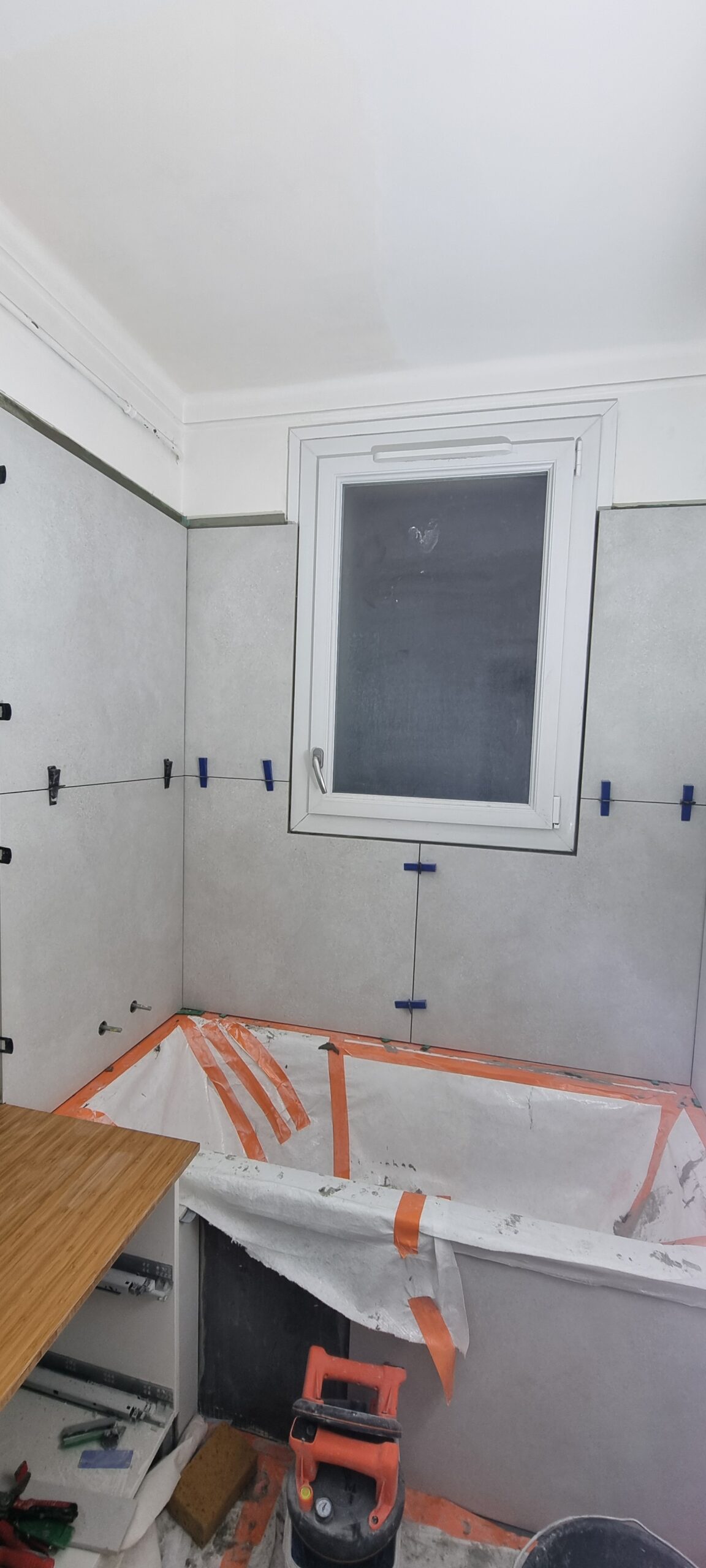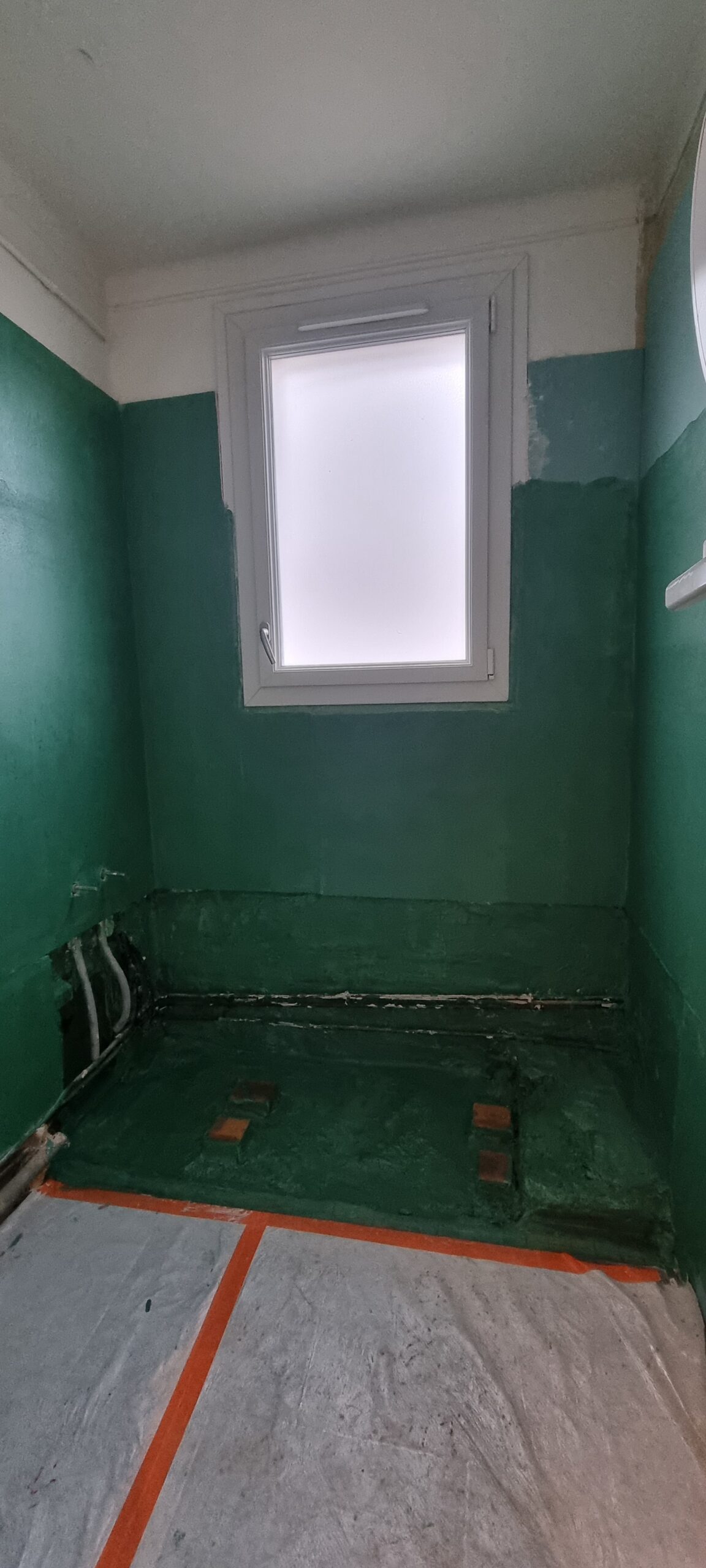 Nous avons donc fait appel à une société spécialisée dans le traitement fongique, dont l’expertise a permis d’assainir intégralement la pièce avant toute reprise des travaux. Ce traitement professionnel comprend l’élimination des foyers de moisissures, l’application de produits fongicides adaptés aux supports concernés, et la vérification de l’absence de toute contamination résiduelle. Ce n’est qu’une fois cette étape validée que la rénovation a pu reprendre dans de bonnes conditions. C’est cette rigueur qui garantit la pérennité des travaux réalisés par la suite.